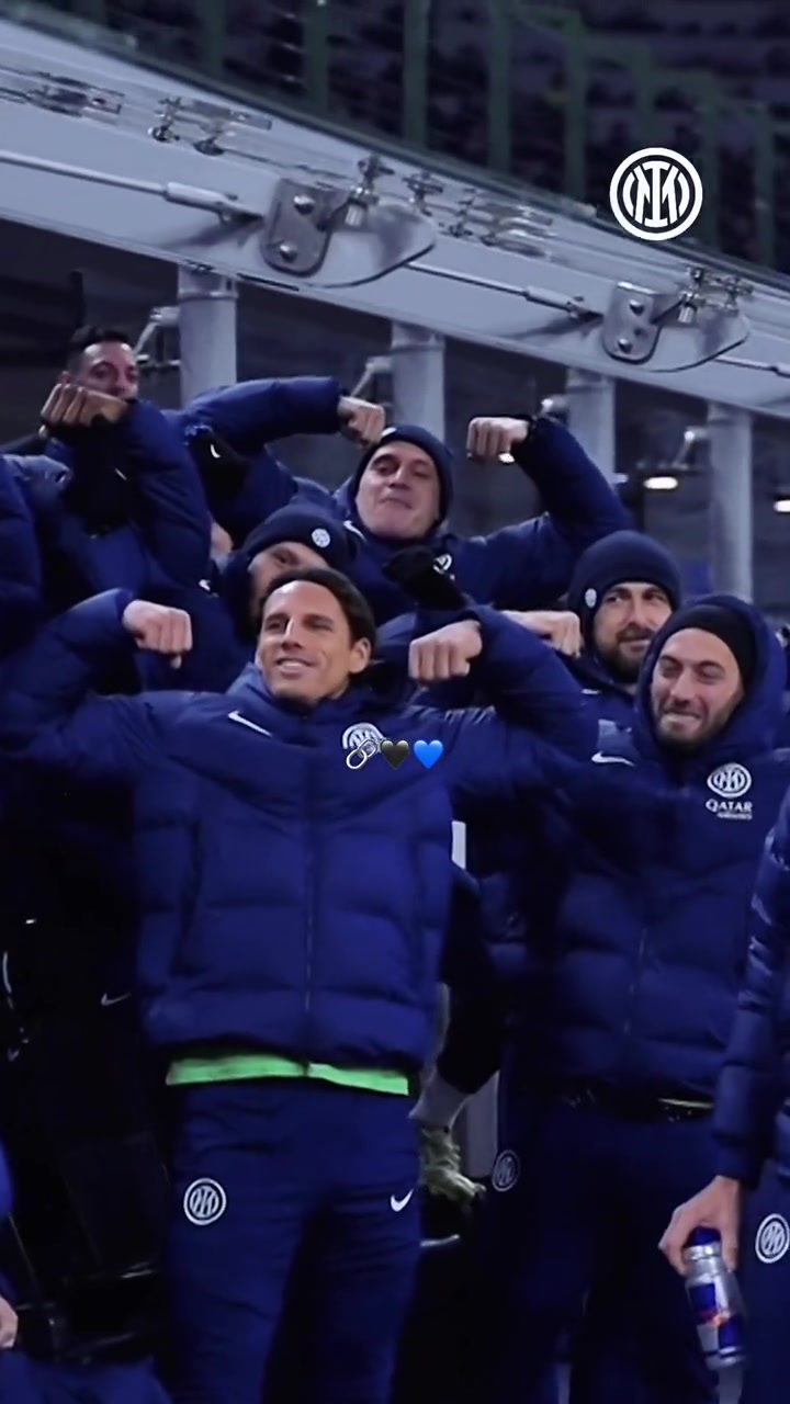 整齐划一!国米替补席上的主力们齐刷刷陪皮奥秀二头肌
