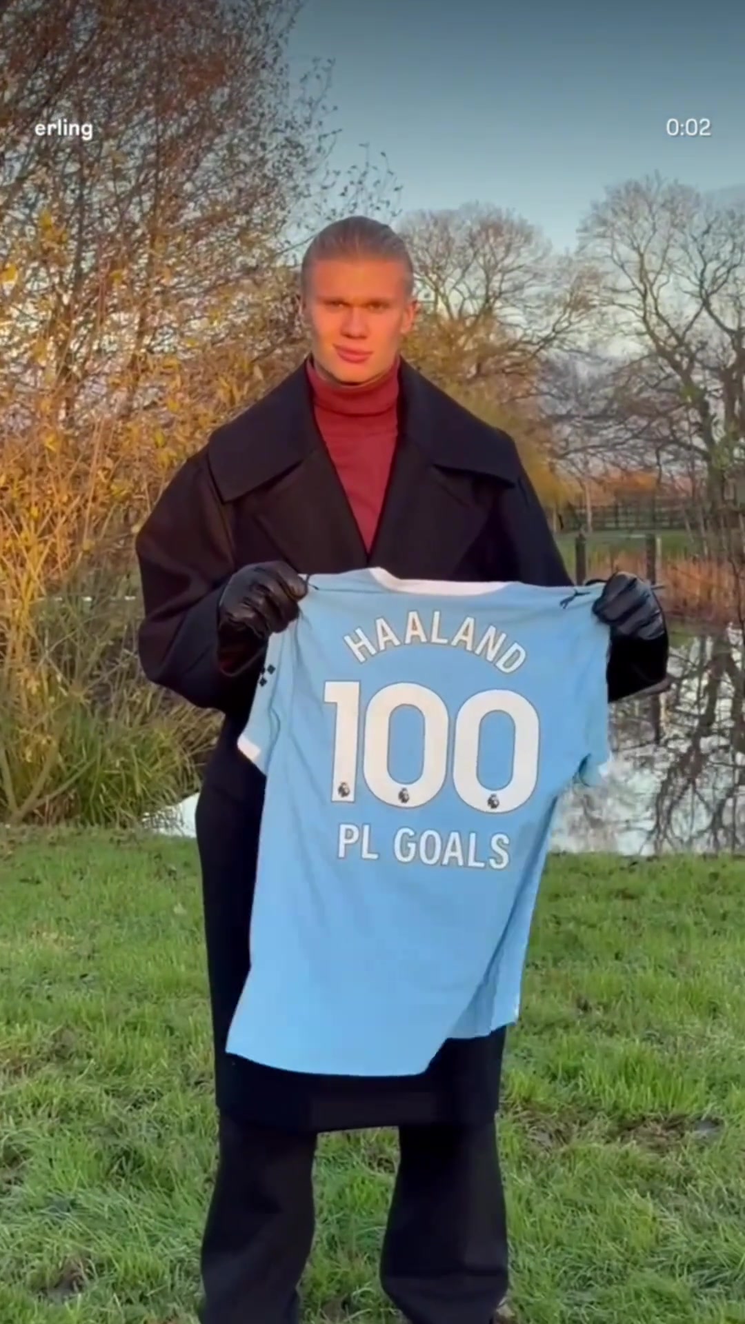哈兰德晒出英超100球纪念球衣,这画质都快看不清哈兰德的脸了