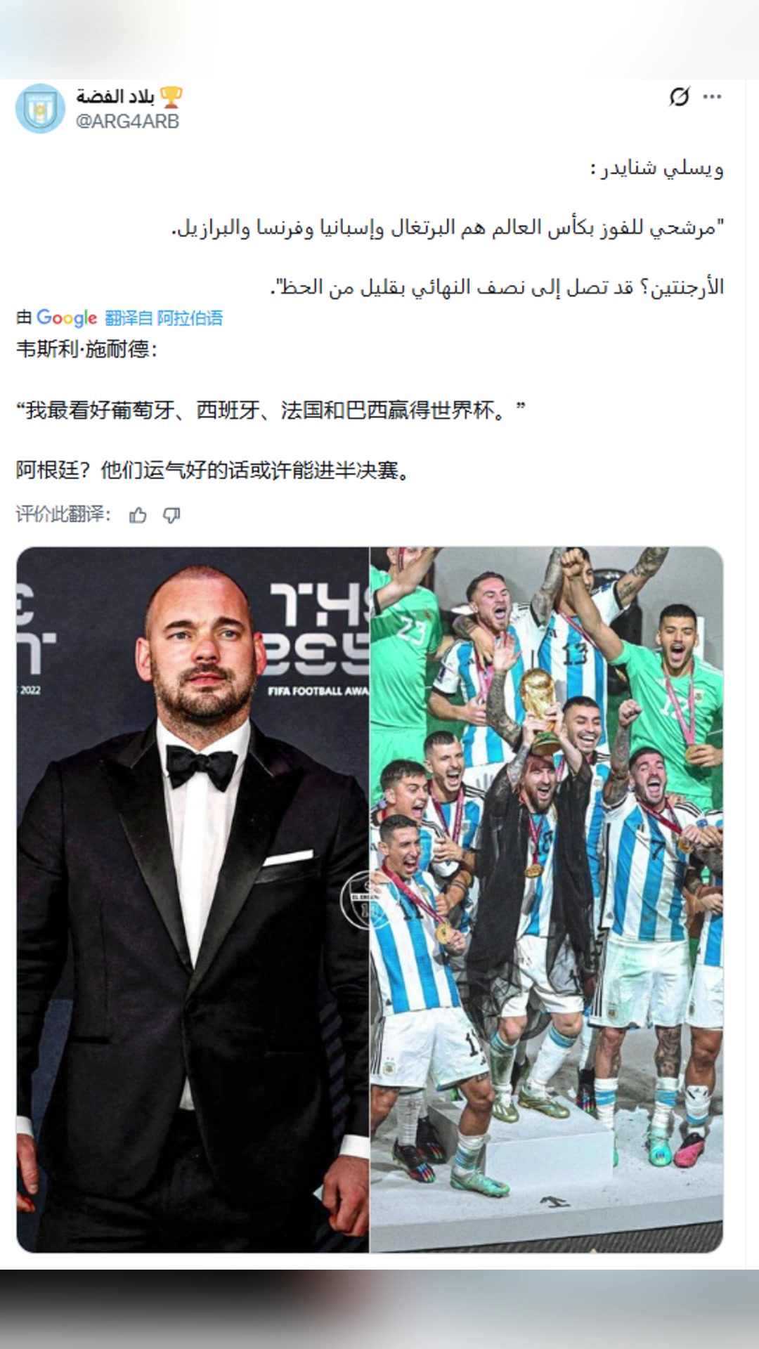 阿根廷赢世界杯?斯内德:阿根廷?他们运气好的话或许能进半决赛