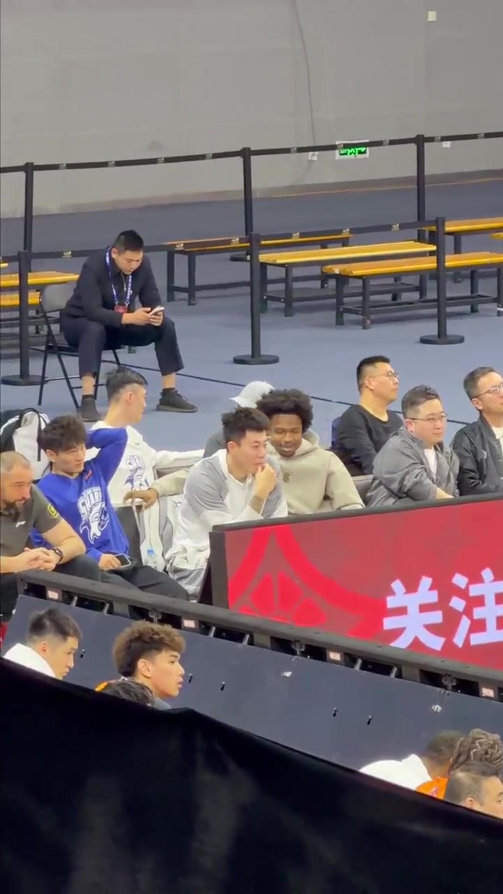 心情不错啊!张镇麟和队友古德温现场观战CBA俱乐部杯
