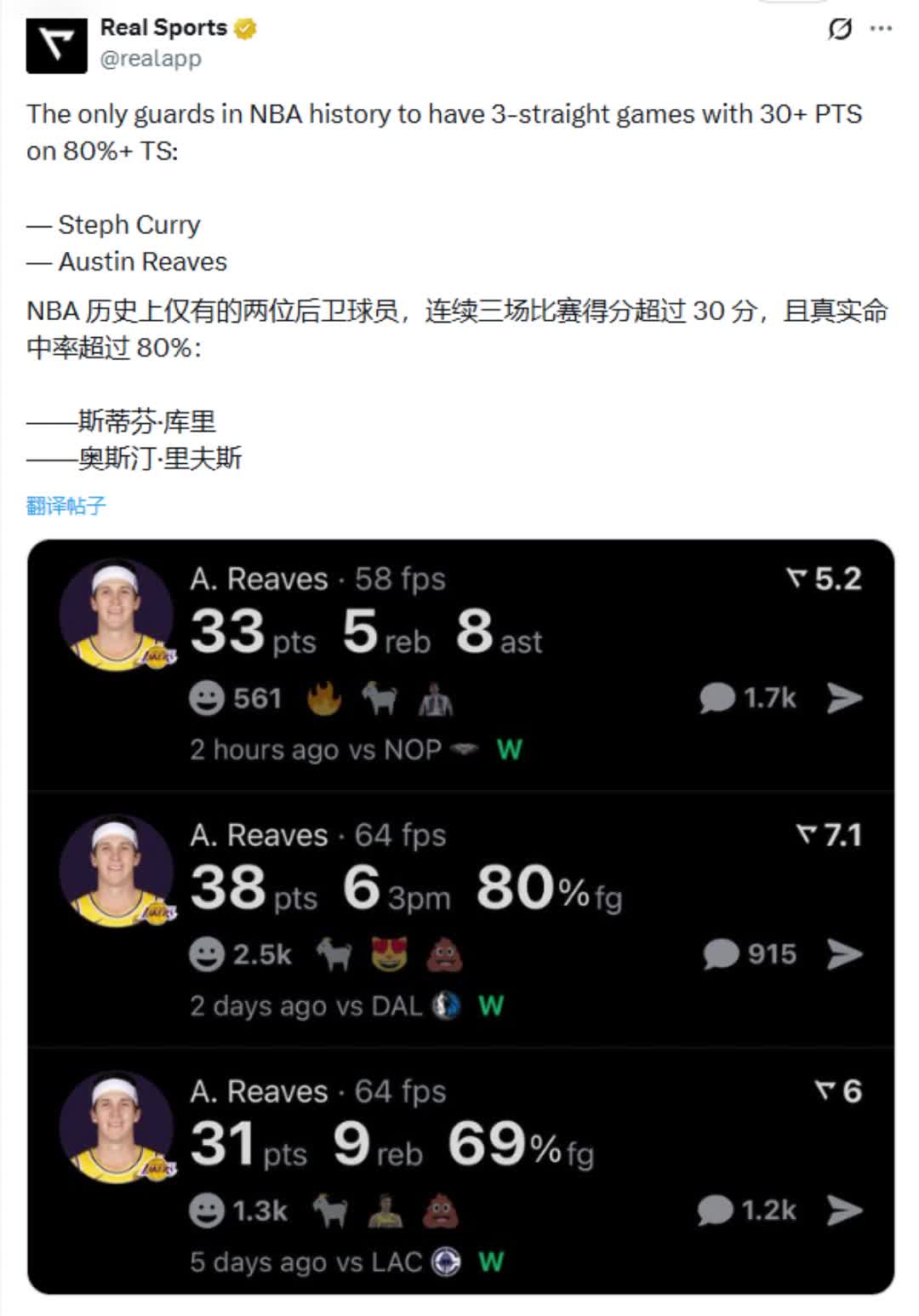 4000万怕是留不下哦!里夫斯连续三场得分30+且真实命中率80%+,比肩库里